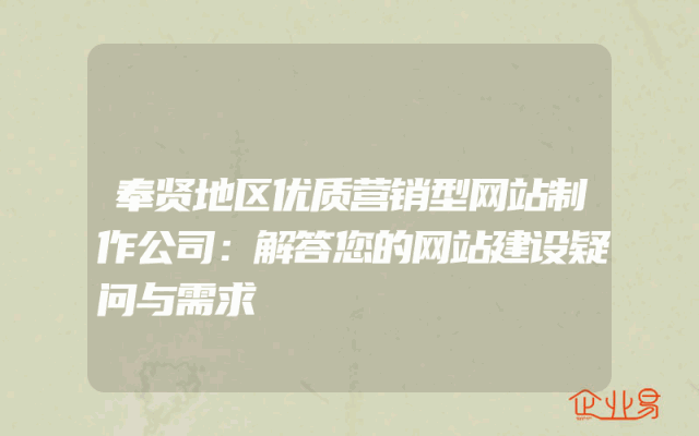 - 奉贤地区优质营销型网站制作公司:解答您的网站建设疑问与需求