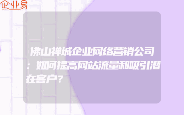 - 佛山禅城企业网络营销公司:如何提高网站流量和吸引潜在客户?