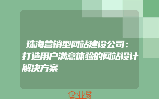 - 珠海营销型网站建设公司:打造用户满意体验的网站设计解决方案
