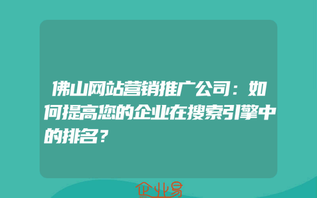 - 佛山网站营销推广公司:如何提高您的企业在搜索引擎中的排名?
