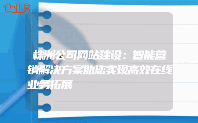 - 株洲公司网站建设:智能营销解决方案助您实现高效在线业务拓展