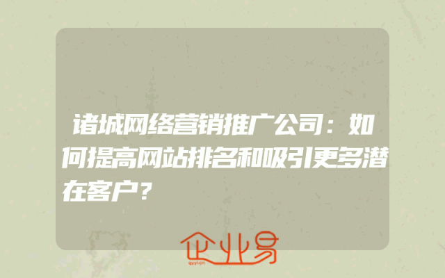 - 诸城网络营销推广公司:如何提高网站排名和吸引更多潜在客户?