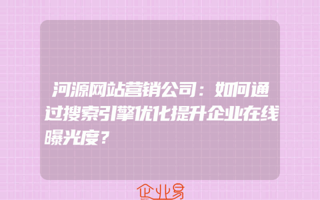 - 河源网站营销公司:如何通过搜索引擎优化提升企业在线曝光度?