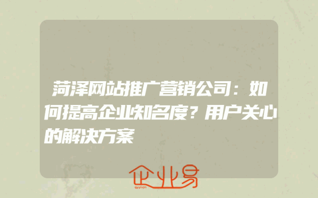 - 菏泽网站推广营销公司:如何提高企业知名度?用户关心的解决方案