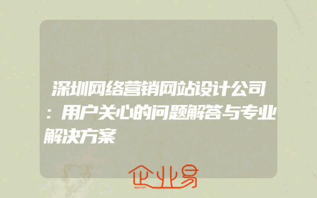 - 深圳网络营销网站设计公司:用户关心的问题解答与专业解决方案