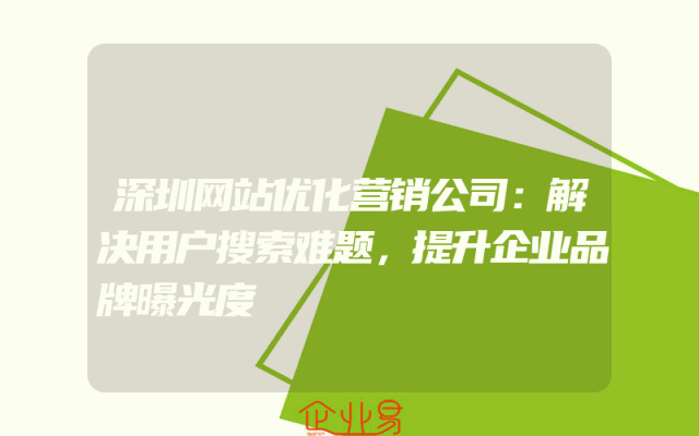 - 深圳网站优化营销公司:解决用户搜索难题,提升企业品牌曝光度
