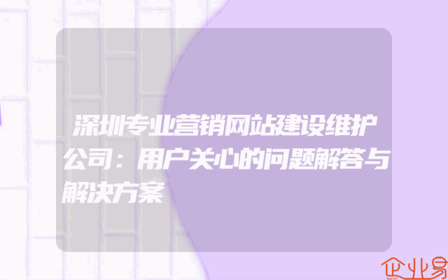 - 深圳专业营销网站建设维护公司:用户关心的问题解答与解决方案