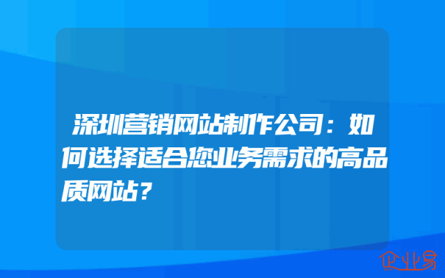 - 深圳营销网站制作公司:如何选择适合您业务需求的高品质网站?