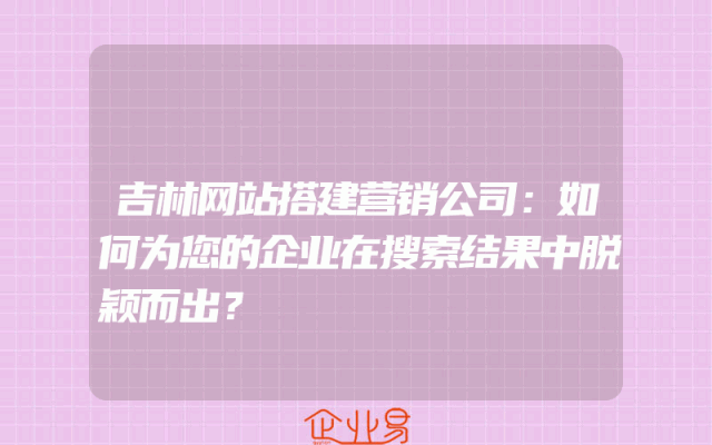 - 吉林网站搭建营销公司:如何为您的企业在搜索结果中脱颖而出?
