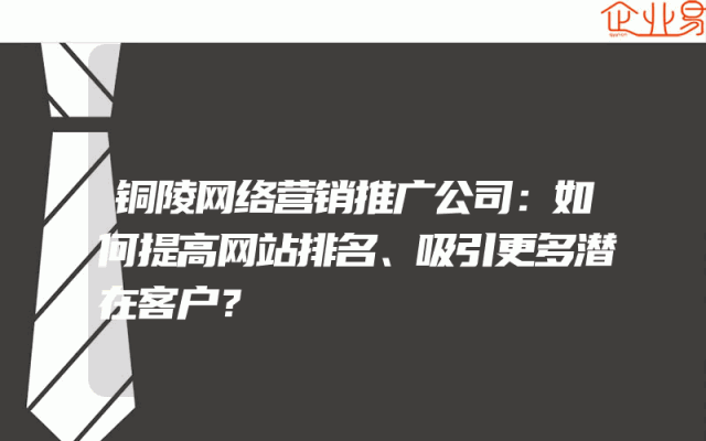 - 铜陵网络营销推广公司:如何提高网站排名、吸引更多潜在客户?