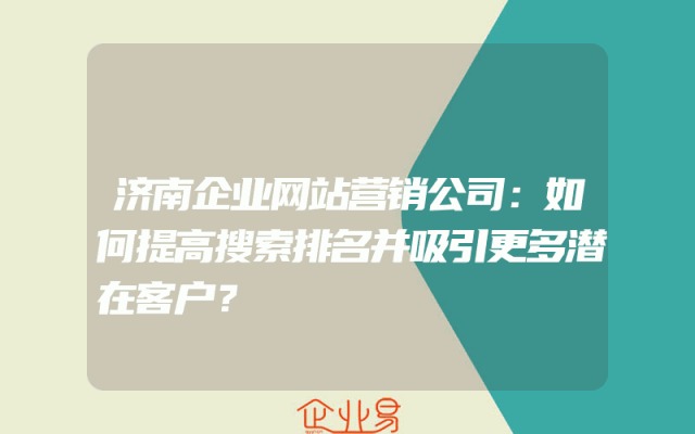 - 济南企业网站营销公司:如何提高搜索排名并吸引更多潜在客户?