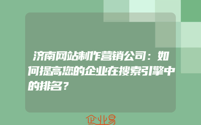 - 济南网站制作营销公司:如何提高您的企业在搜索引擎中的排名?