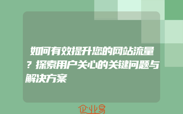 - 如何有效提升您的网站流量?探索用户关心的关键问题与解决方案