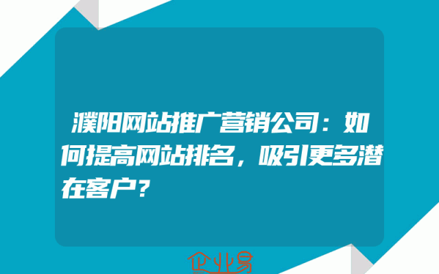 - 濮阳网站推广营销公司:如何提高网站排名,吸引更多潜在客户?