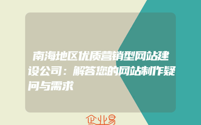 - 南海地区优质营销型网站建设公司:解答您的网站制作疑问与需求