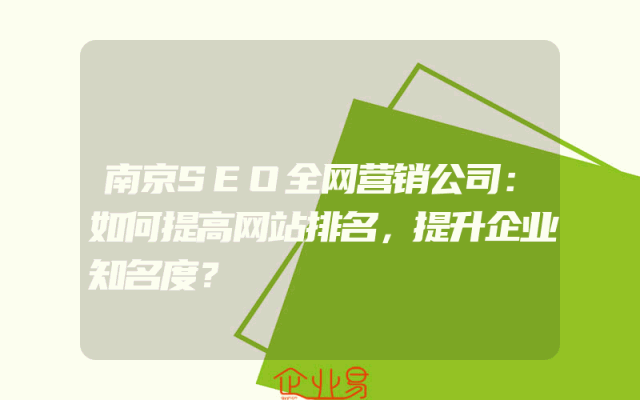 - 南京SEO全网营销公司:如何提高网站排名,提升企业知名度?