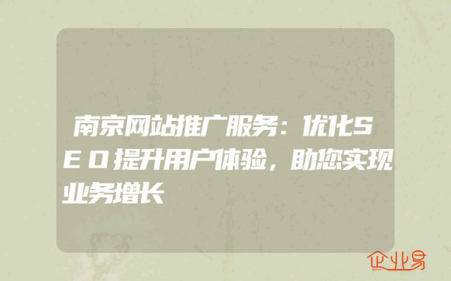 - 南京网站推广服务:优化SEO提升用户体验,助您实现业务增长