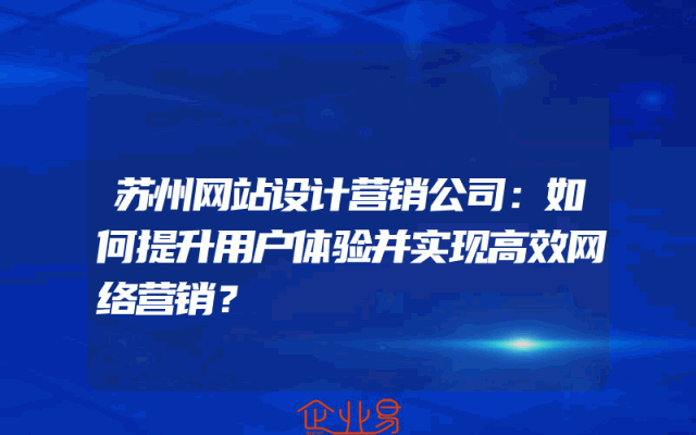 - 苏州网站设计营销公司:如何提升用户体验并实现高效网络营销?