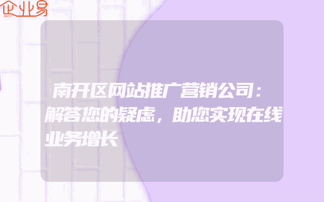 - 南开区网站推广营销公司:解答您的疑虑,助您实现在线业务增长