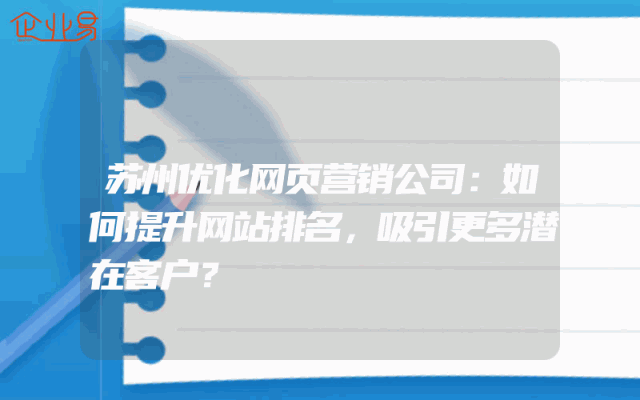 - 苏州优化网页营销公司:如何提升网站排名,吸引更多潜在客户?