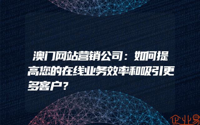 - 澳门网站营销公司:如何提高您的在线业务效率和吸引更多客户?