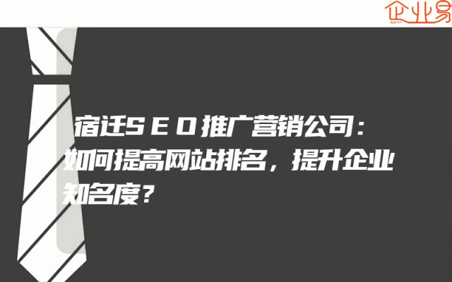 - 宿迁SEO推广营销公司:如何提高网站排名,提升企业知名度?