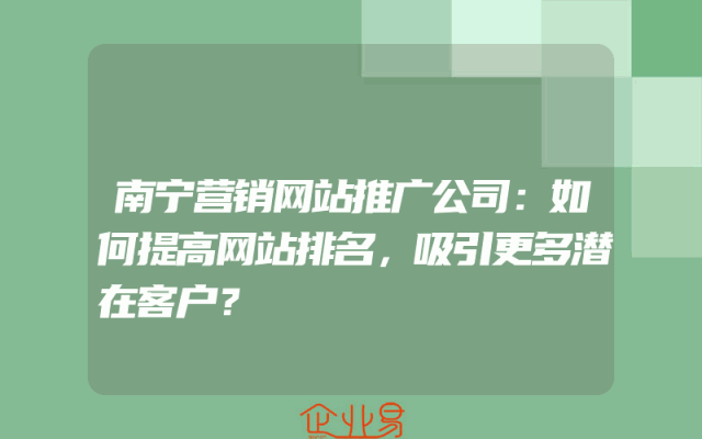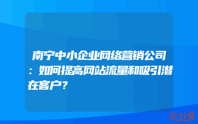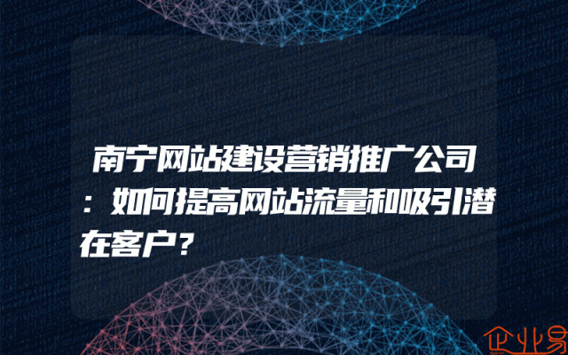 - 南宁中小企业网络营销公司:如何提高网站流量和吸引潜在客户?