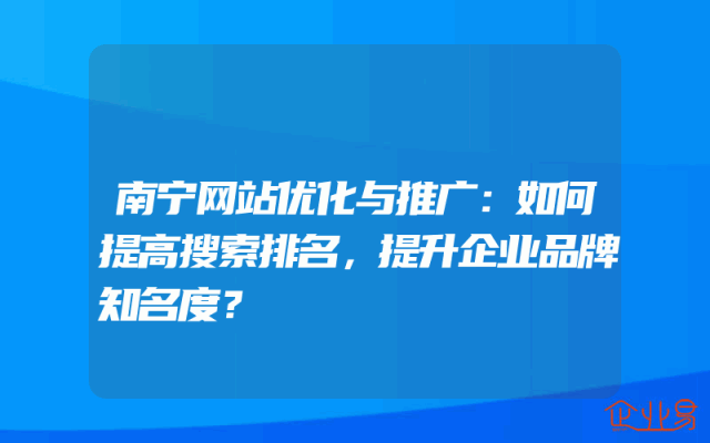 - 南宁网站优化与推广:如何提高搜索排名,提升企业品牌知名度?