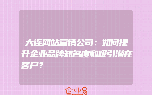 - 大连网站营销公司:如何提升企业品牌知名度和吸引潜在客户?