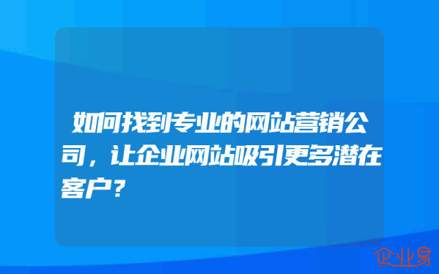- 如何找到专业的网站营销公司,让企业网站吸引更多潜在客户?