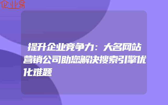 - 提升企业竞争力:大名网站营销公司助您解决搜索引擎优化难题