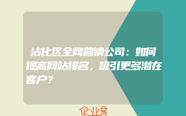 - 沾化区全网营销公司:如何提高网站排名,吸引更多潜在客户?