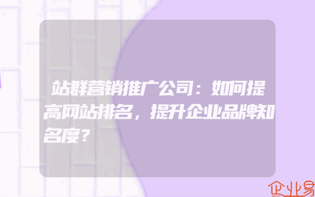 - 站群营销推广公司:如何提高网站排名,提升企业品牌知名度?