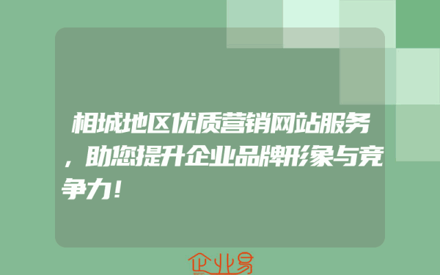 - 相城地区优质营销网站服务,助您提升企业品牌形象与竞争力!在当今的信息化社会,企业的品牌形象和竞争力对于其发展至关重要。而一个优质的营销网站,无疑是提升这两者的关键。本文将为您介绍相城地区的优质营销网站服务,帮助您的企业在激烈的市场竞争中脱颖