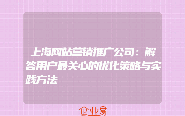 - 上海网站营销推广公司:解答用户最关心的优化策略与实践方法