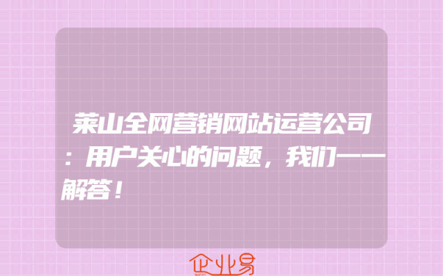 - 莱山全网营销网站运营公司:用户关心的问题,我们一一解答!