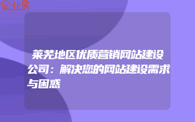 - 莱芜地区优质营销网站建设公司:解决您的网站建设需求与困惑