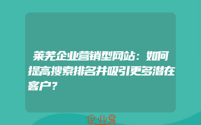 - 莱芜企业营销型网站:如何提高搜索排名并吸引更多潜在客户?