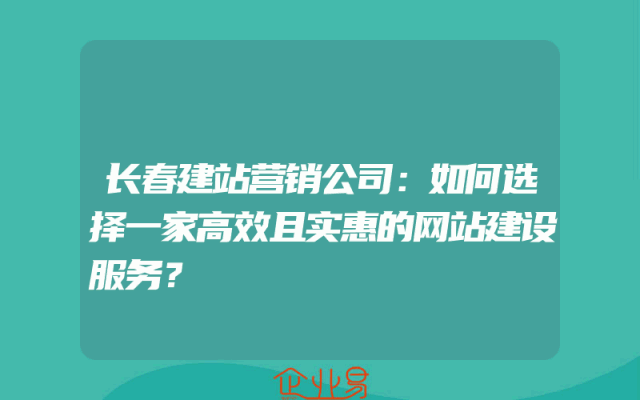 - 长春建站营销公司:如何选择一家高效且实惠的网站建设服务?