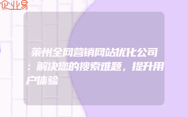 - 莱州全网营销网站优化公司:解决您的搜索难题,提升用户体验