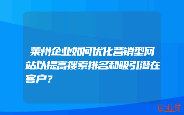 - 莱州企业如何优化营销型网站以提高搜索排名和吸引潜在客户?