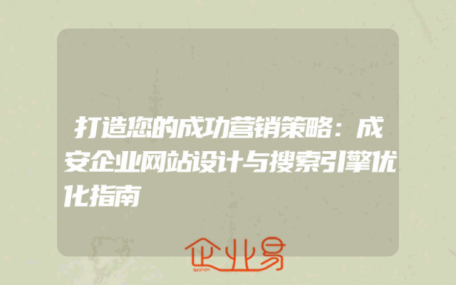 - 打造您的成功营销策略:成安企业网站设计与搜索引擎优化指南