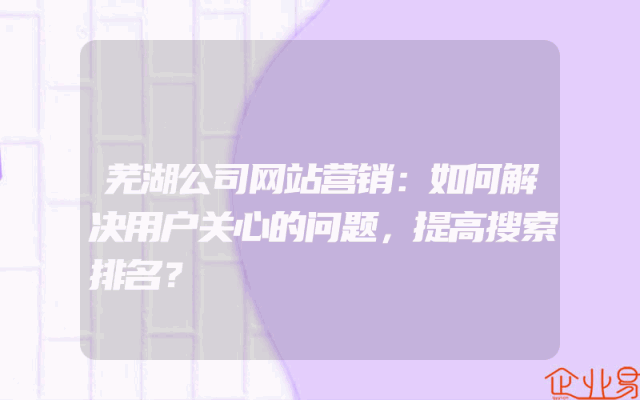 - 芜湖公司网站营销:如何解决用户关心的问题,提高搜索排名?