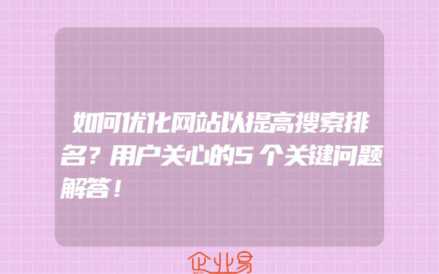 - 如何优化网站以提高搜索排名?用户关心的5个关键问题解答!