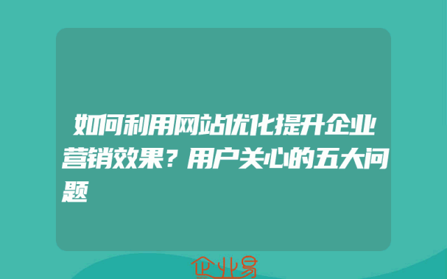 - 如何利用网站优化提升企业营销效果?用户关心的五大问题
