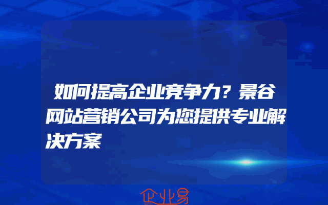 - 提高企业竞争力的方法在当今竞争激烈的市场环境中,企业要想在众多的竞争对手中脱颖而出,提高自身的竞争力是非常重要的。景谷网站营销公司作为一家专业的网络营销服务提供商,为您提供以下几个方面的专业解决方案,帮助您提高企业的竞争力。明确企业定位和目