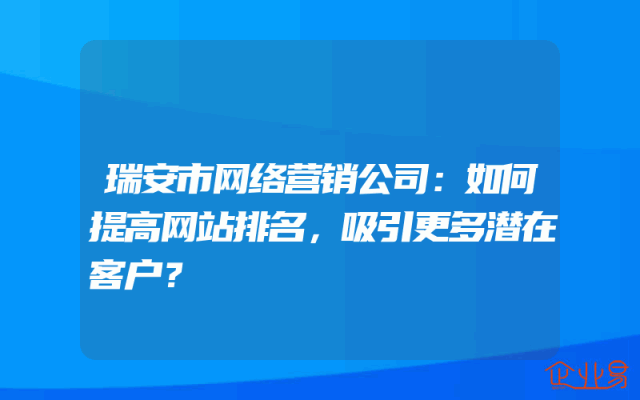 - 瑞安市网络营销公司:如何提高网站排名,吸引更多潜在客户?
