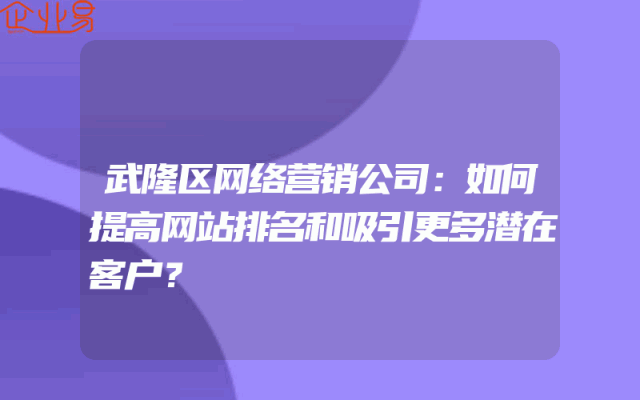 - 武隆区网络营销公司:如何提高网站排名和吸引更多潜在客户?