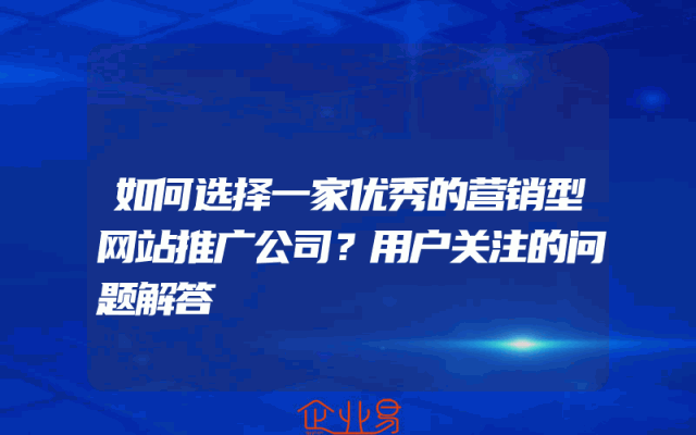 - 如何选择一家优秀的营销型网站推广公司?用户关注的问题解答