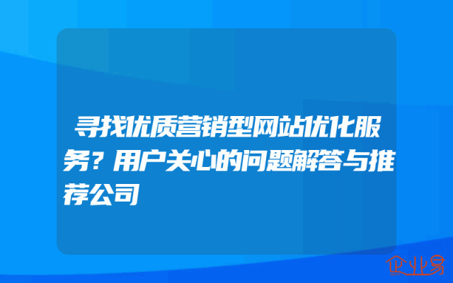 - 寻找优质营销型网站优化服务?用户关心的问题解答与推荐公司